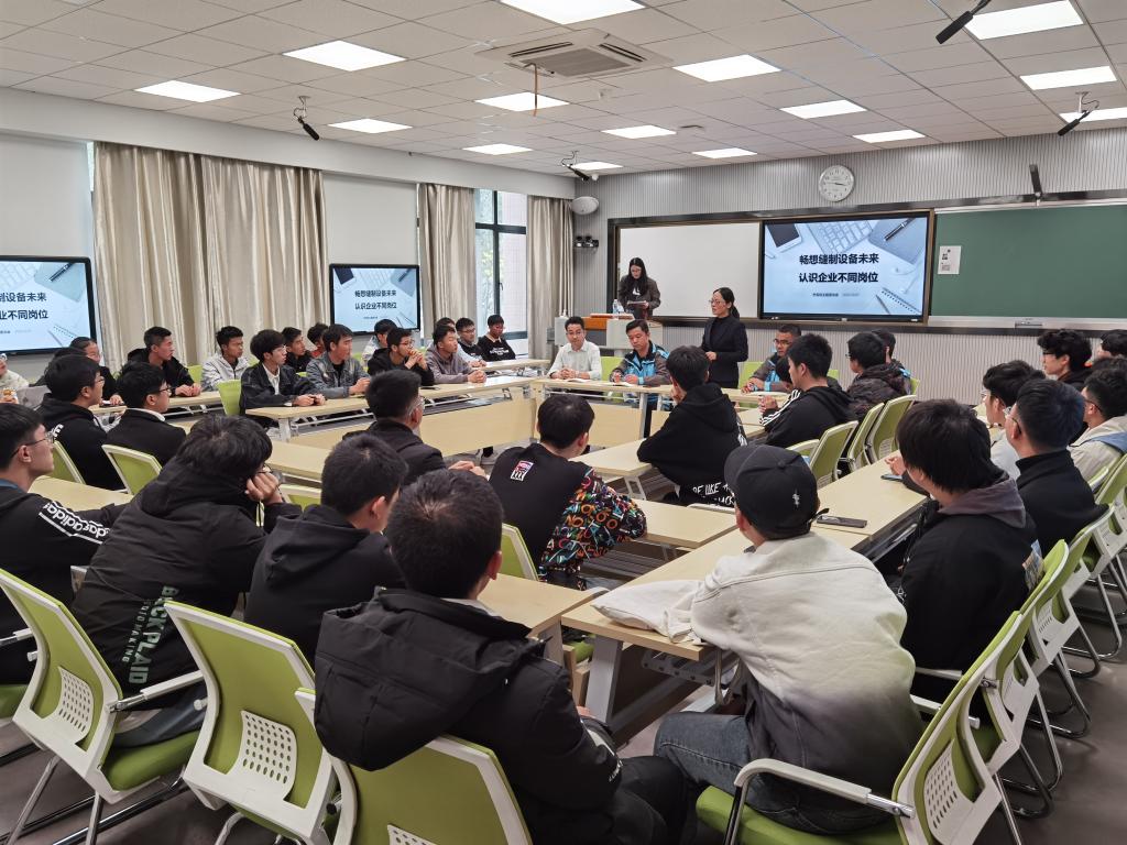 12月1日下午,航空工程学院在4号楼智慧教室举行第五期“e”路青年派活动。本次活动由杰克集团人力资源部陈巧英经理以及各部门政委担任主讲嘉宾,杰克班班主任、辅导员和杰克班学生40余人参加活动。