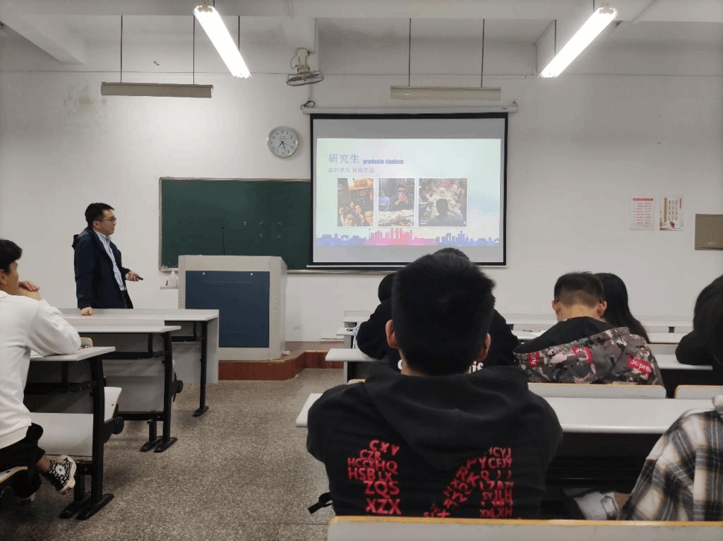 活动中,金毅博士以“我的大学生活”为主题,通过PPT展示,图文并茂的向同学们分享了他从本科到研究生过程中所经历的点点滴滴,其中既包括了生活上的趣事,也包括了学习上的难事。有初入大学生活的不适和学习的迷茫,也有在考研中的努力拼搏,更有读博期间科研的不易以及收获的喜悦。他强调既然选择了远方,便只顾风雨兼程,走过那些刻苦,终将迎来光明。他鼓励同学们要在大学阶段明确自己的目标,并提出学习建议并分享了考研心得,为大家指引前行方向。一路走来,郁郁光影,年华四季,光阴流逝着十年的银光里,承载筑梦旅途的诗和远方,韶华几许不负,归来仍是少年!