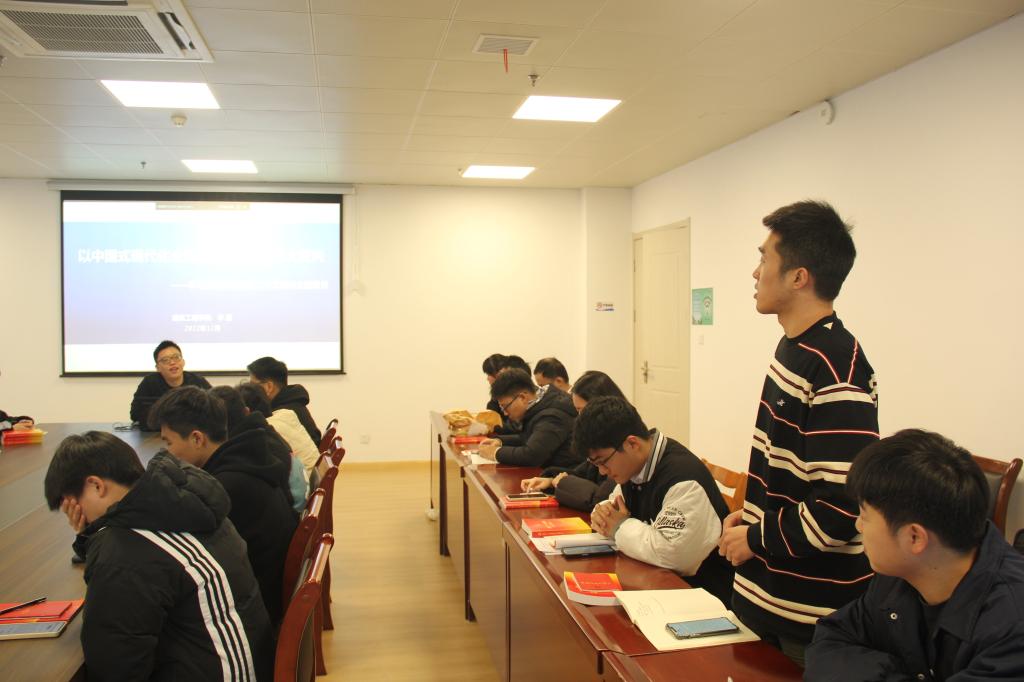 在讨论交流环节,李鑫老师带着大家参与到对“中国式现代化”、“中华民族伟大复兴”、“共同富裕”这三个要素的激烈讨论中。李鑫老师讲述了自己十年前在广西调研时的经历,引发同学们思考和广泛讨论。最后他强调作为入党积极分子和党员必须要学习宣传阐释党的二十大精神,讲好党的二十大精神,激励广大青年投身强国征程,作出应有的贡献。