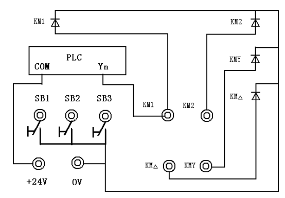 进一步掌握三相异步电动机Y/△起动、正反转控制的工作原理及方法。掌握用PLC程序代替传统继电器接触器控制回路的思路与方法、进一步熟悉PLC程序的调试技巧与方法。要求独立编制程序,正确接线,调试并正常运行程序,达到按要求控制电机的目的。