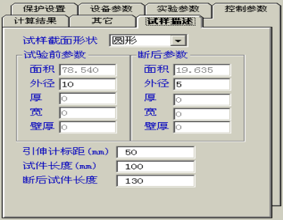 式中系数k的取值为5.65时为短试件,取11.3时为长试件。对直径为d0的圆截面试件,短试件和长试件的标距l0分别为5 d010 d0。非比例试件的l0A0不受上述关系限制。本实验采用圆截面的短试件,即l0=5 d0