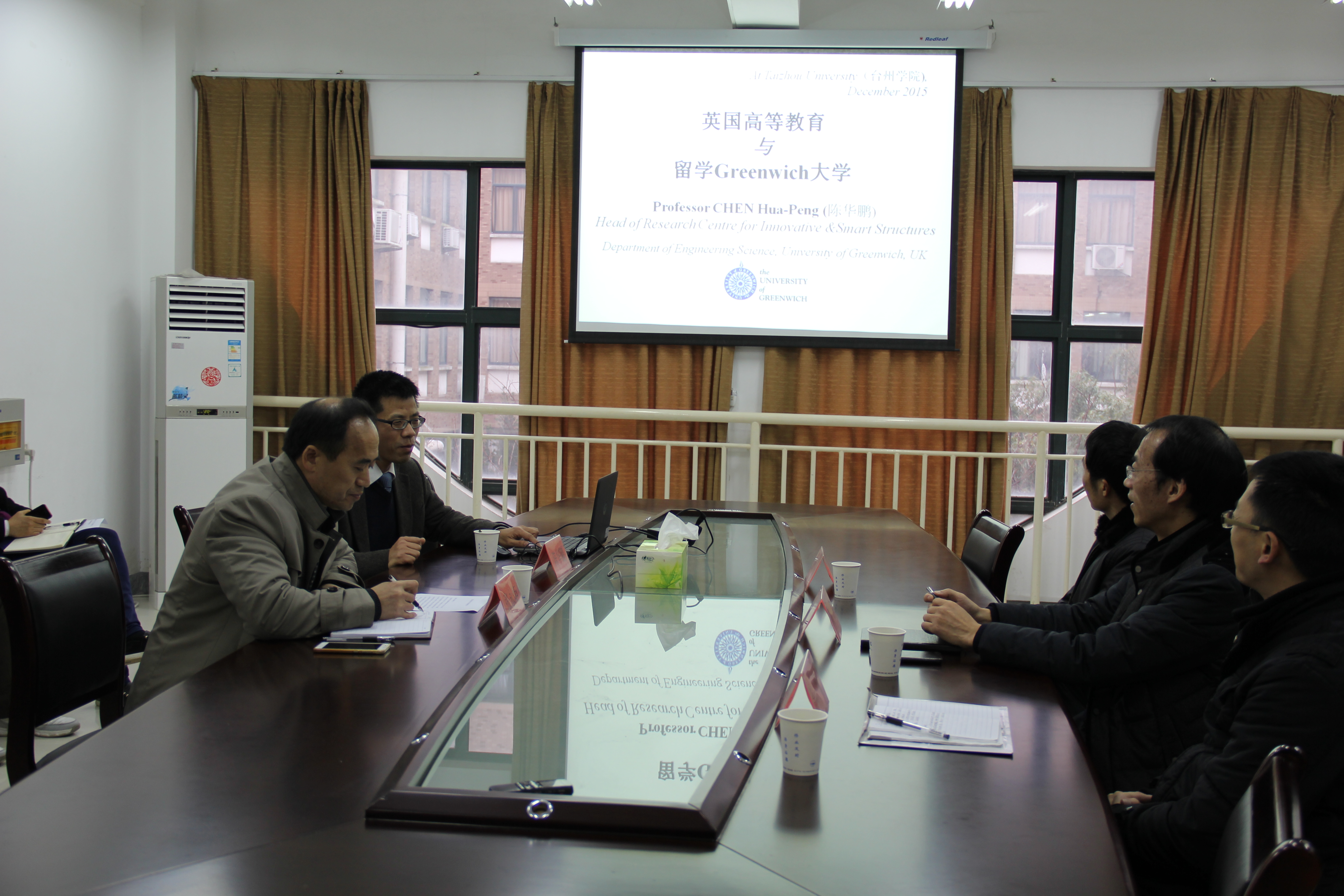 陈华鹏教授结合其从教经验,详细全面地介绍了英国与中国高等教育的差异,以及英国高校教育体系、教育模式和教学方法。同时,他还给大家介绍了英国格林威治大学的课程体系和学生培养方式。最后他表明英国格林威治大学工程系专业和台州学院机械专业进行对接的意向。