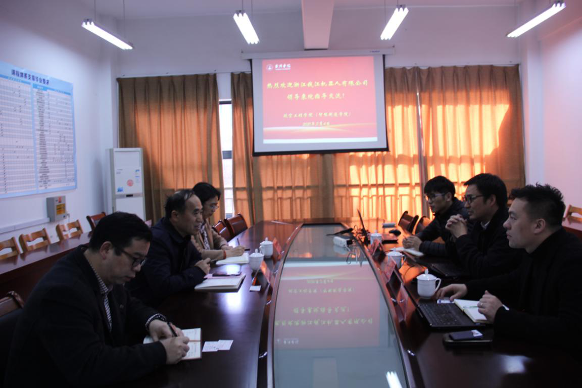 3月4日,浙江钱江机器人有限公司副总经理周文彪一行来我校智能制造学院进行校企合作洽谈,智能制造学院院长张永炬、副院长张莉及教学实验室主任金飞翔参加。