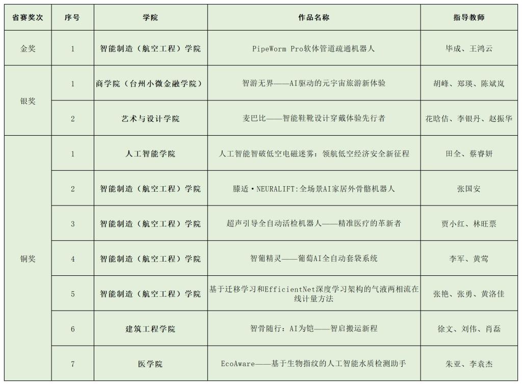 台州学院挑战杯“人工智能+”专项赛省赛获奖名单